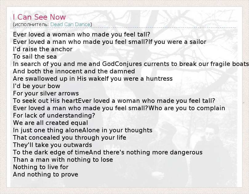 А как ты думаешь, о чем песня "I Can See Now" ?