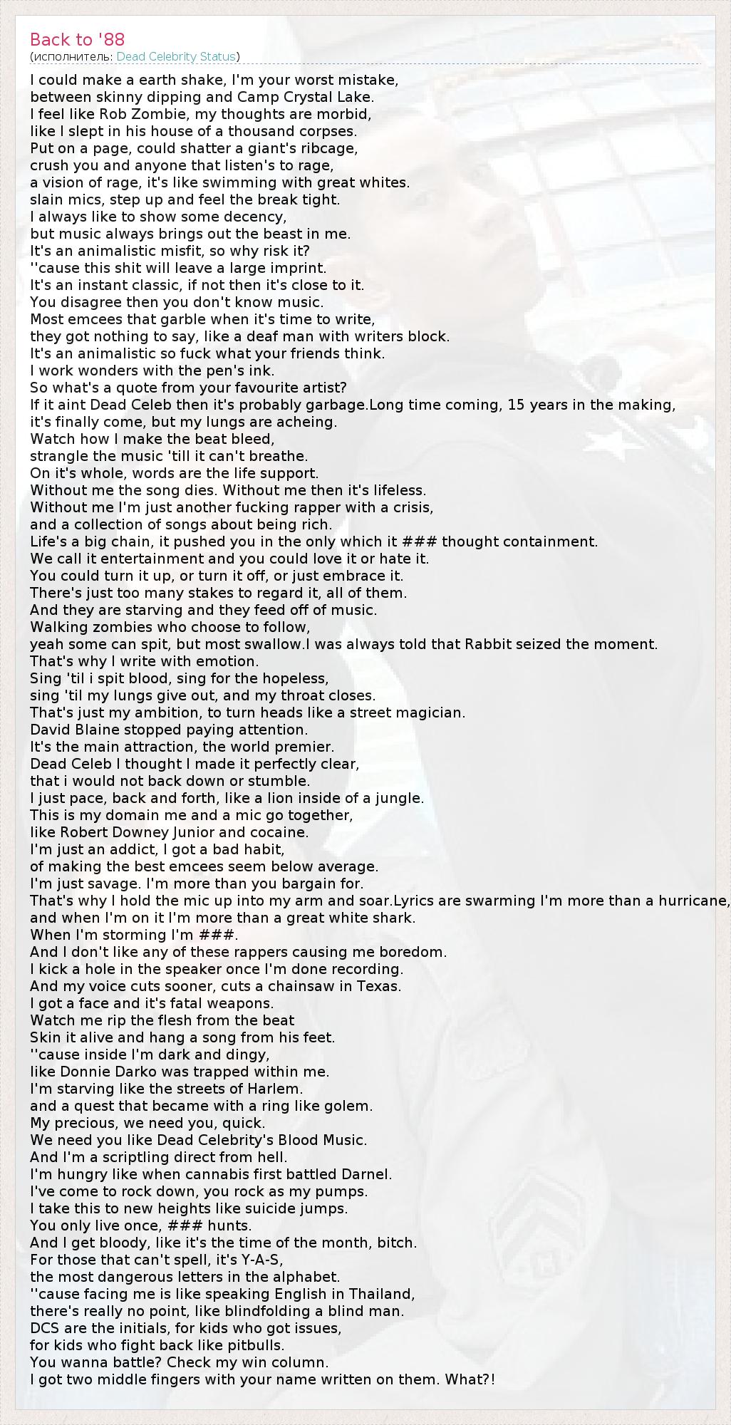 Это интересно:В 2004 на свет родилась новая группа под названием Dead Celebrity Status, состоящая из 3-х человек - DJ Dopey, Yas и Bobby