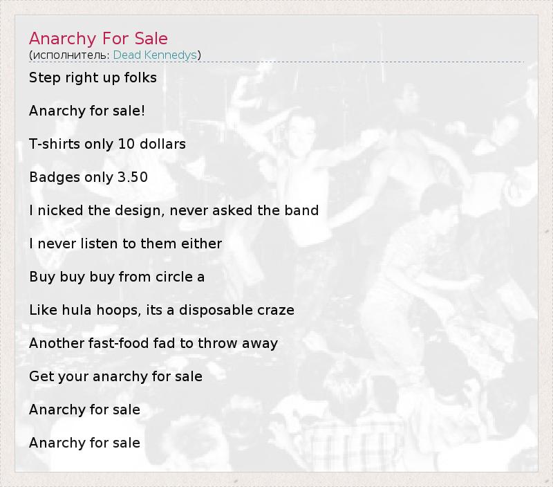А как ты думаешь, о чем песня "Anarchy For Sale" ?