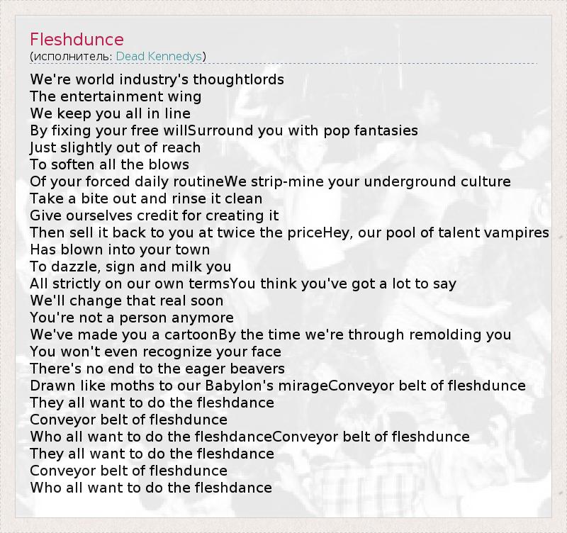 А как ты думаешь, о чем песня "Fleshdunce" ?