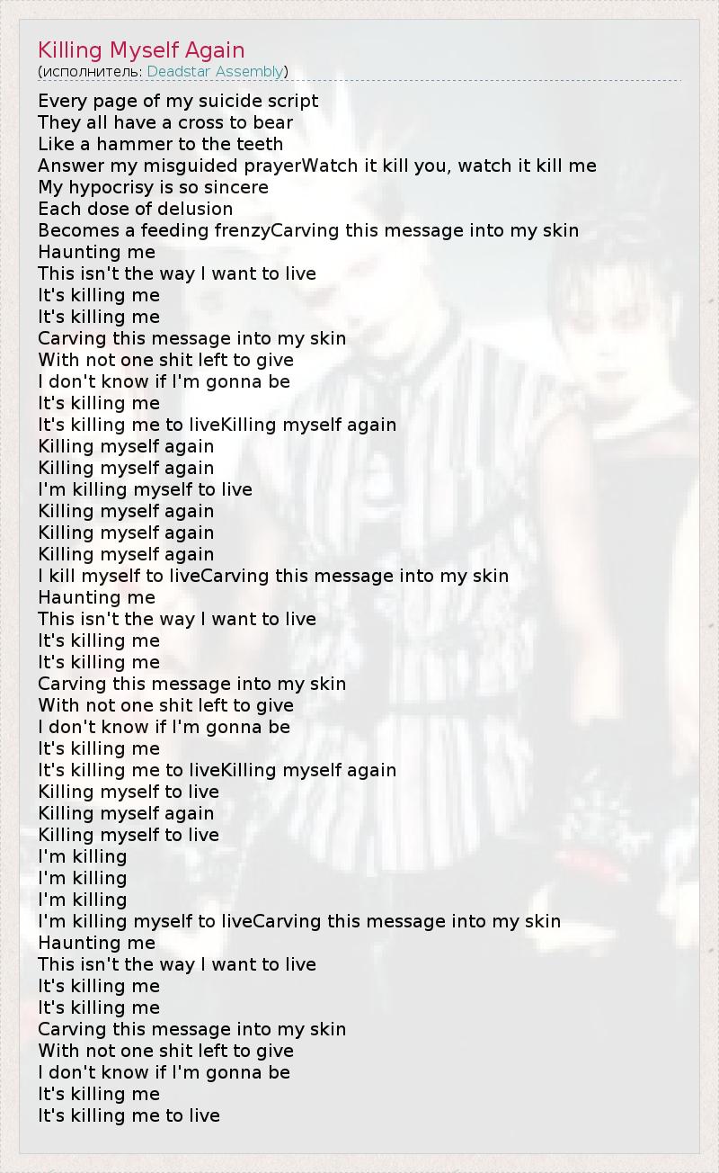 А как ты думаешь, о чем песня "Killing Myself Again" ?