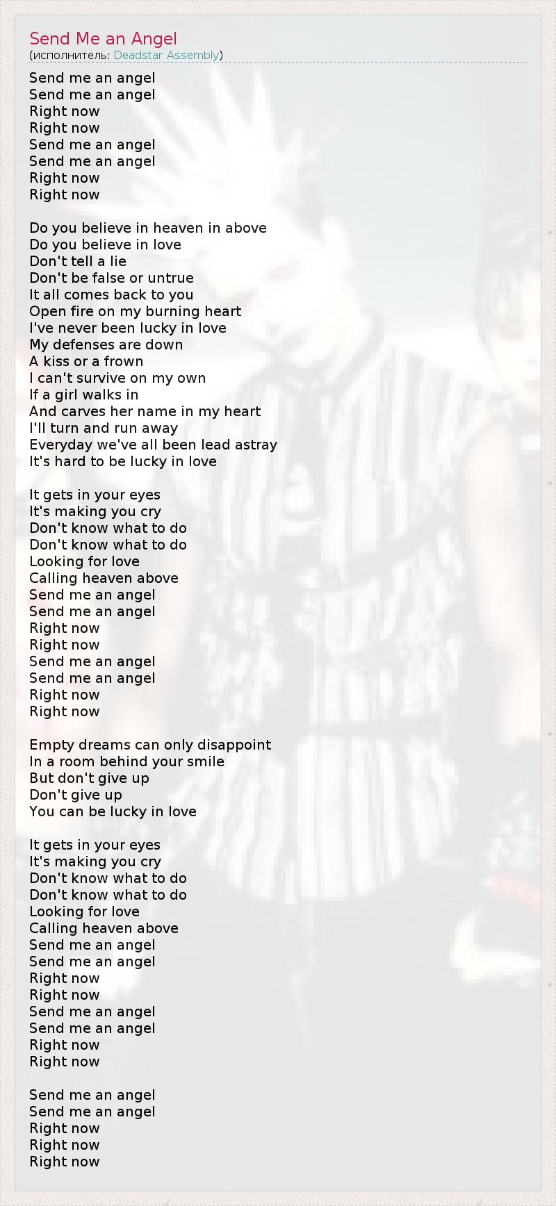 А как ты думаешь, о чем песня "Send Me an Angel" ?