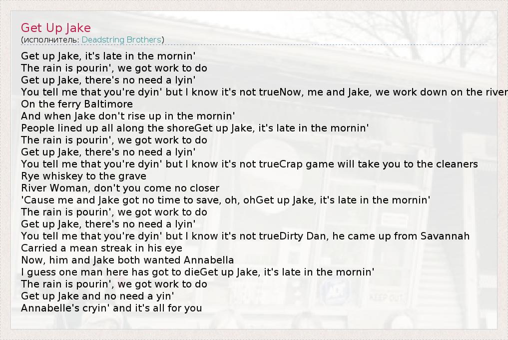 А как ты думаешь, о чем песня "Get Up Jake" ?