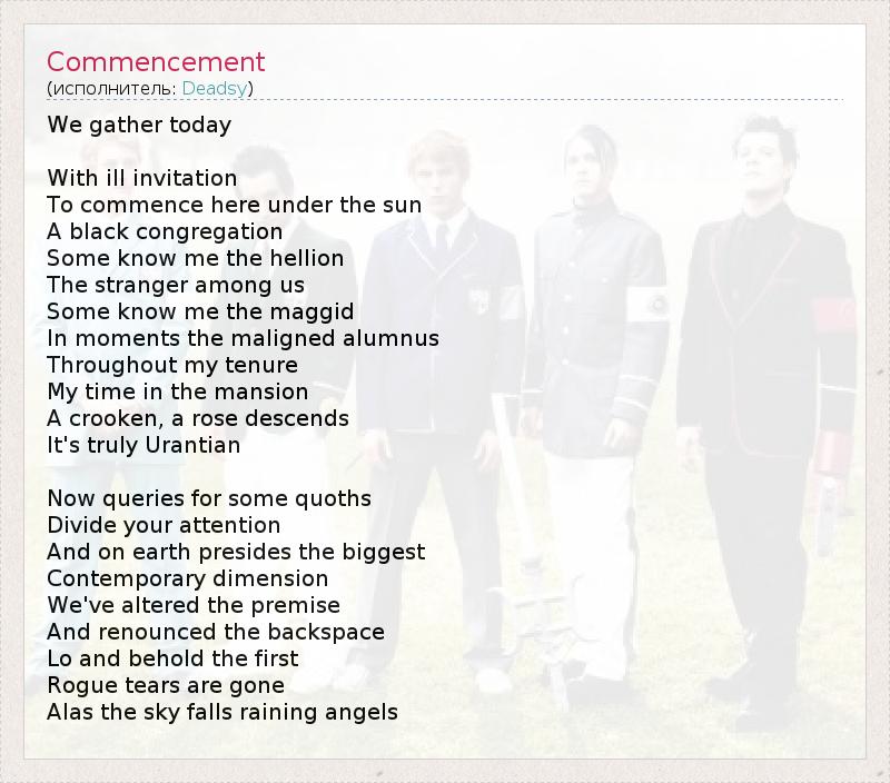 We gather today With ill invitation To commence here under the sun A black congregation Some know me the hellion The stranger among us Some know me the maggid In moments the maligned alumnus Throughout my tenure My time in the mansion A crooken, a rose descends It's truly Urantian Now queries for some quoths Divide your attention And on earth presides the biggest Contemporary dimension We've altered the premise And renounced the backspace Lo and behold the first Rogue tears are gone Alas the sky falls raining angels