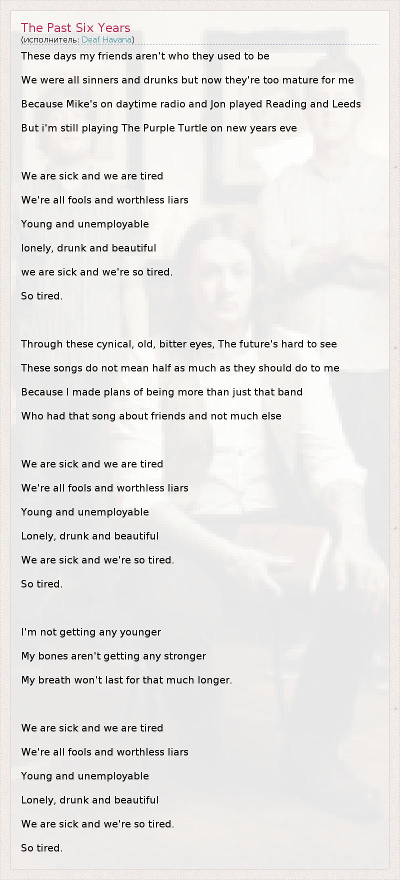А как ты думаешь, о чем песня "The Past Six Years" ?