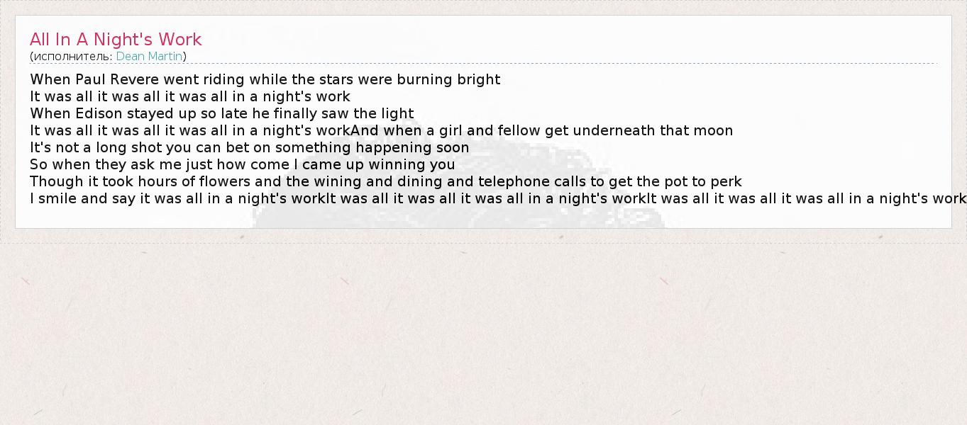 А как ты думаешь, о чем песня "All In A Night's Work" ?