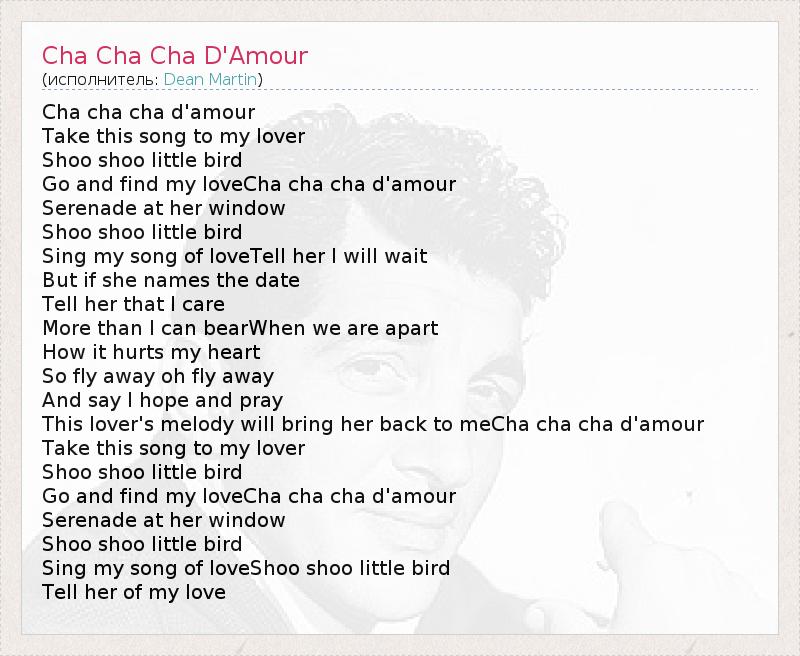 А как ты думаешь, о чем песня "Cha Cha Cha D'Amour" ?