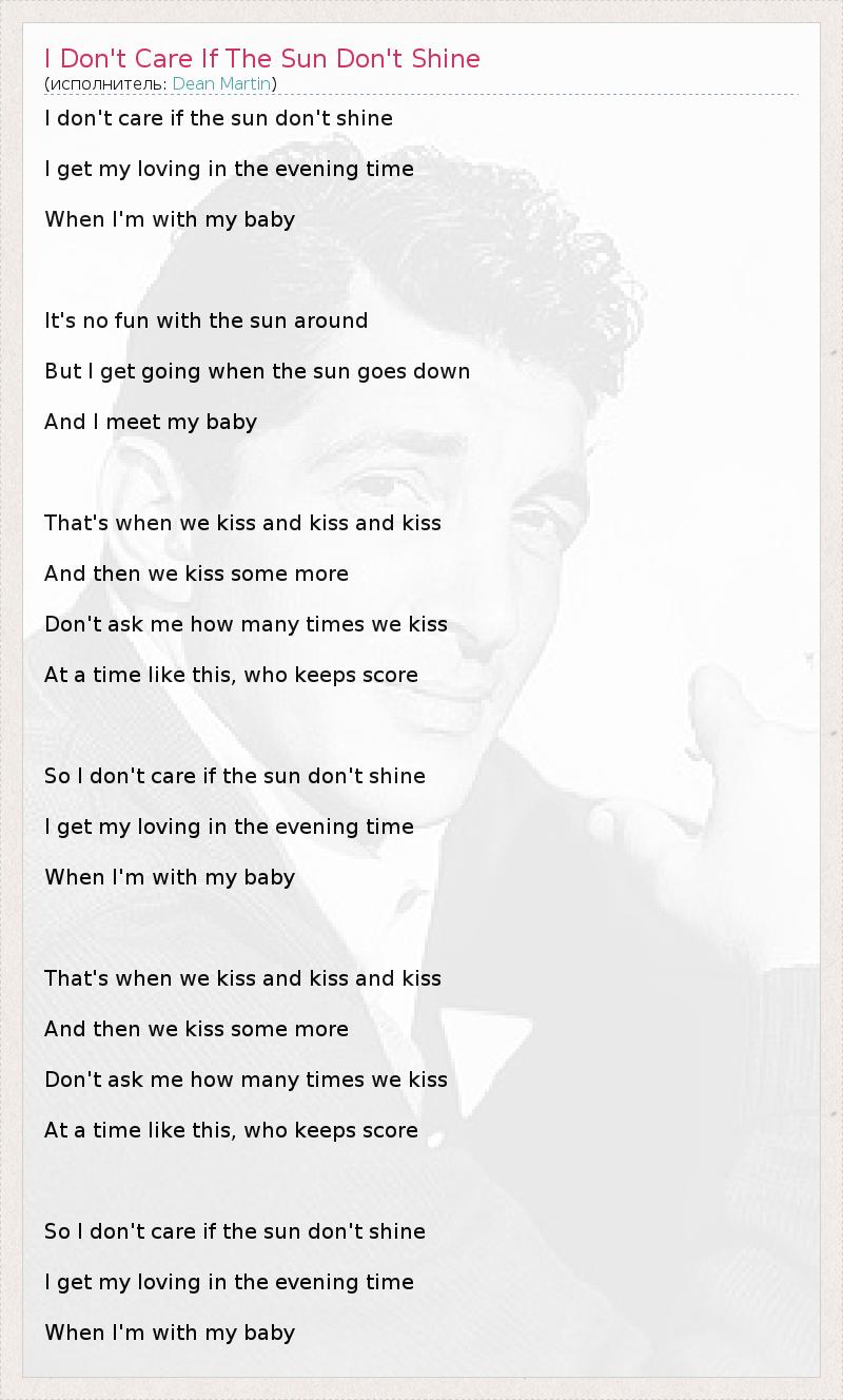 ГлавнаяИсполнителиDean MartinI Don't Care If The Sun Don't Shine