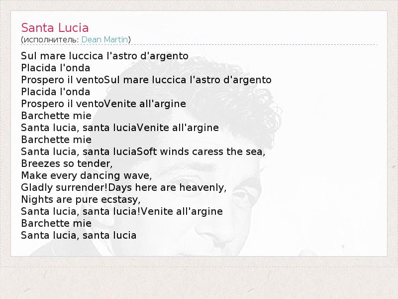 А как ты думаешь, о чем песня "Santa Lucia" ?