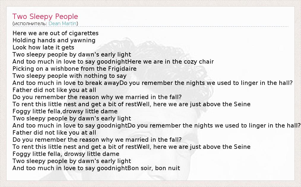 А как ты думаешь, о чем песня "Two Sleepy People" ?