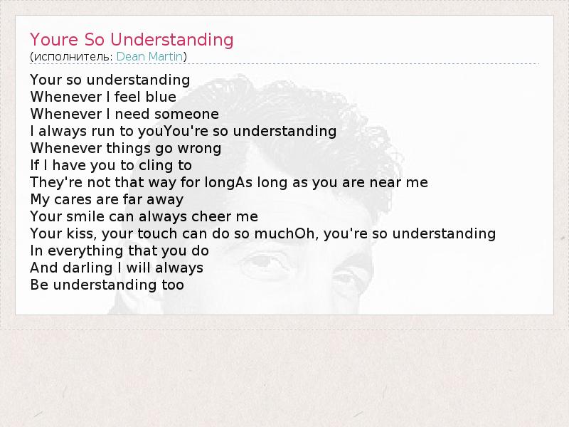 А как ты думаешь, о чем песня "Youre So Understanding" ?