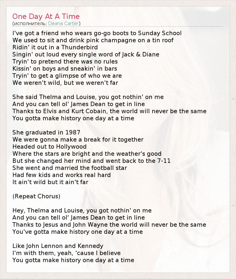 А как ты думаешь, о чем песня "One Day At A Time" ?