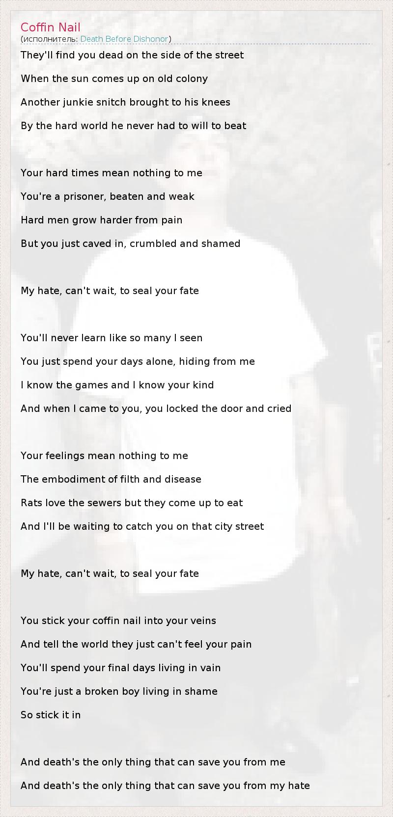 А как ты думаешь, о чем песня "Coffin Nail" ?