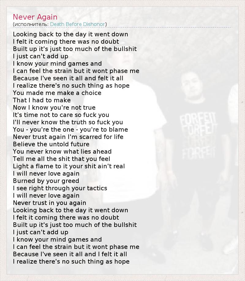 А как ты думаешь, о чем песня "Never Again" ?