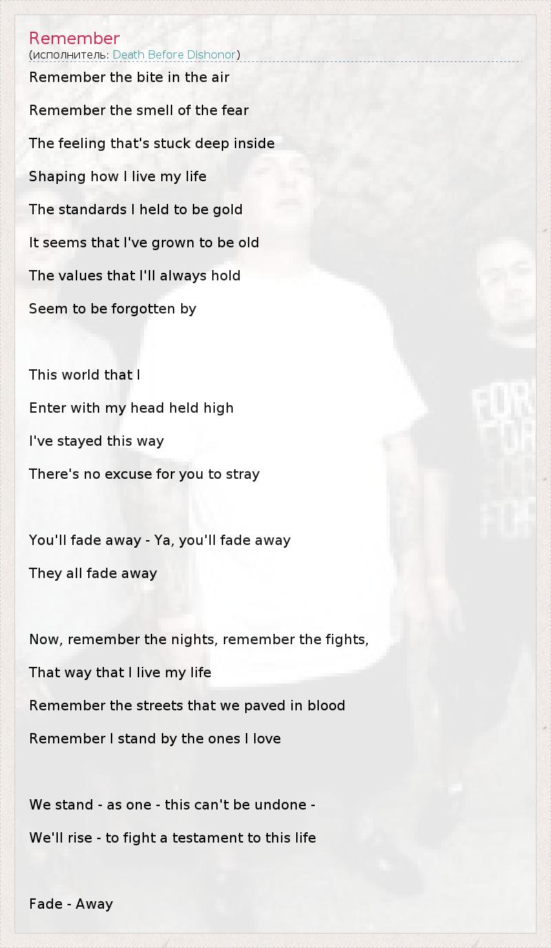 Это интересно:1) NYHC из Нью Йорка. Записали одну демку в 1987-м2) Хардкор из Бостона.Группа была основана в 2000 году. Death Before Dishonor получают восторженные отзывы о своих неумолимых гимнах и диких концертах. Их стремление непрестанно работать привлекло внимание Bridge Nine Records, еще одного Бостонского формирования, созданного на тех же идеалах, которые легли в основу Death Before Dishonor – стойкость, побуждение и страсть.... продолжение