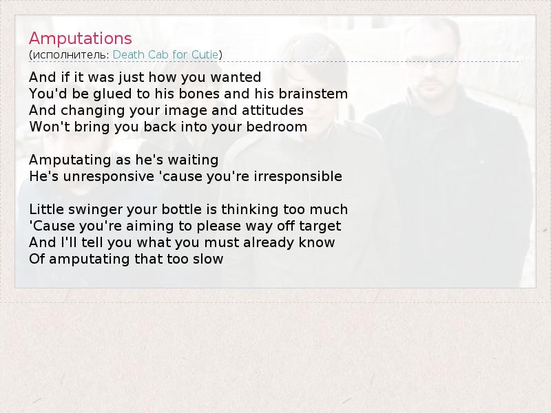 А как ты думаешь, о чем песня "Amputations" ?