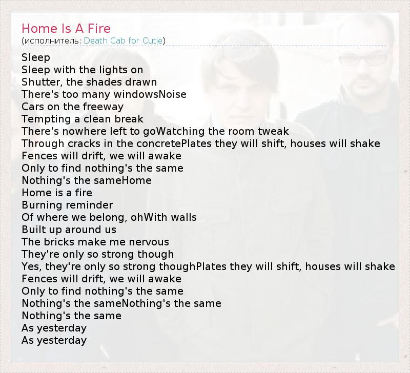 А как ты думаешь, о чем песня "Home Is A Fire" ?
