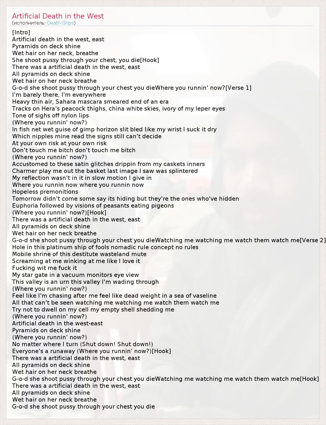 А как ты думаешь, о чем песня "Artificial Death in the West" ?
