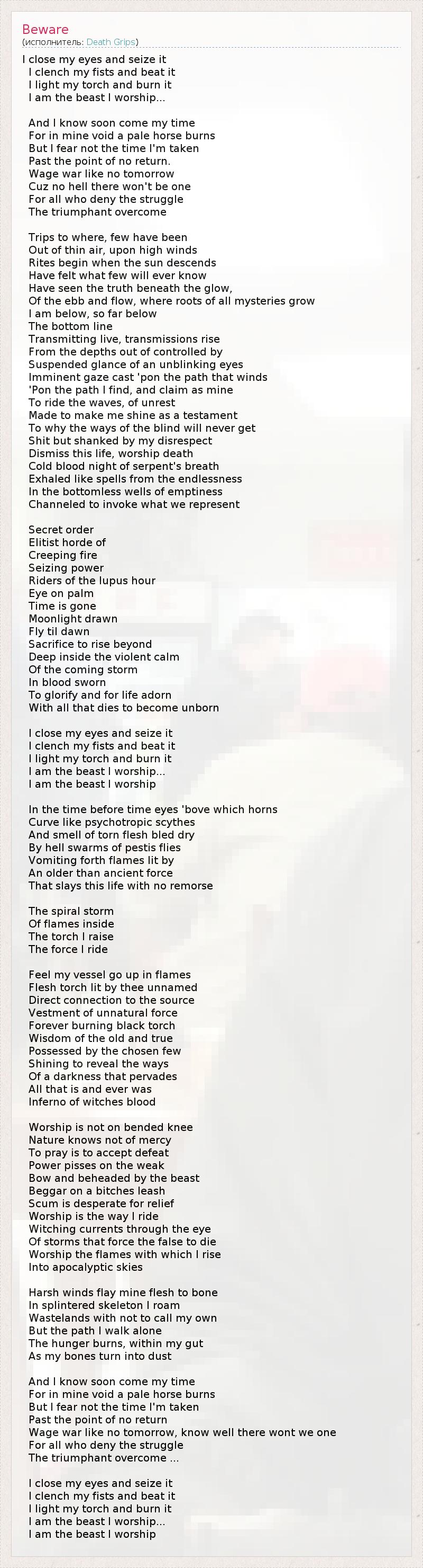 А как ты думаешь, о чем песня "Beware" ?