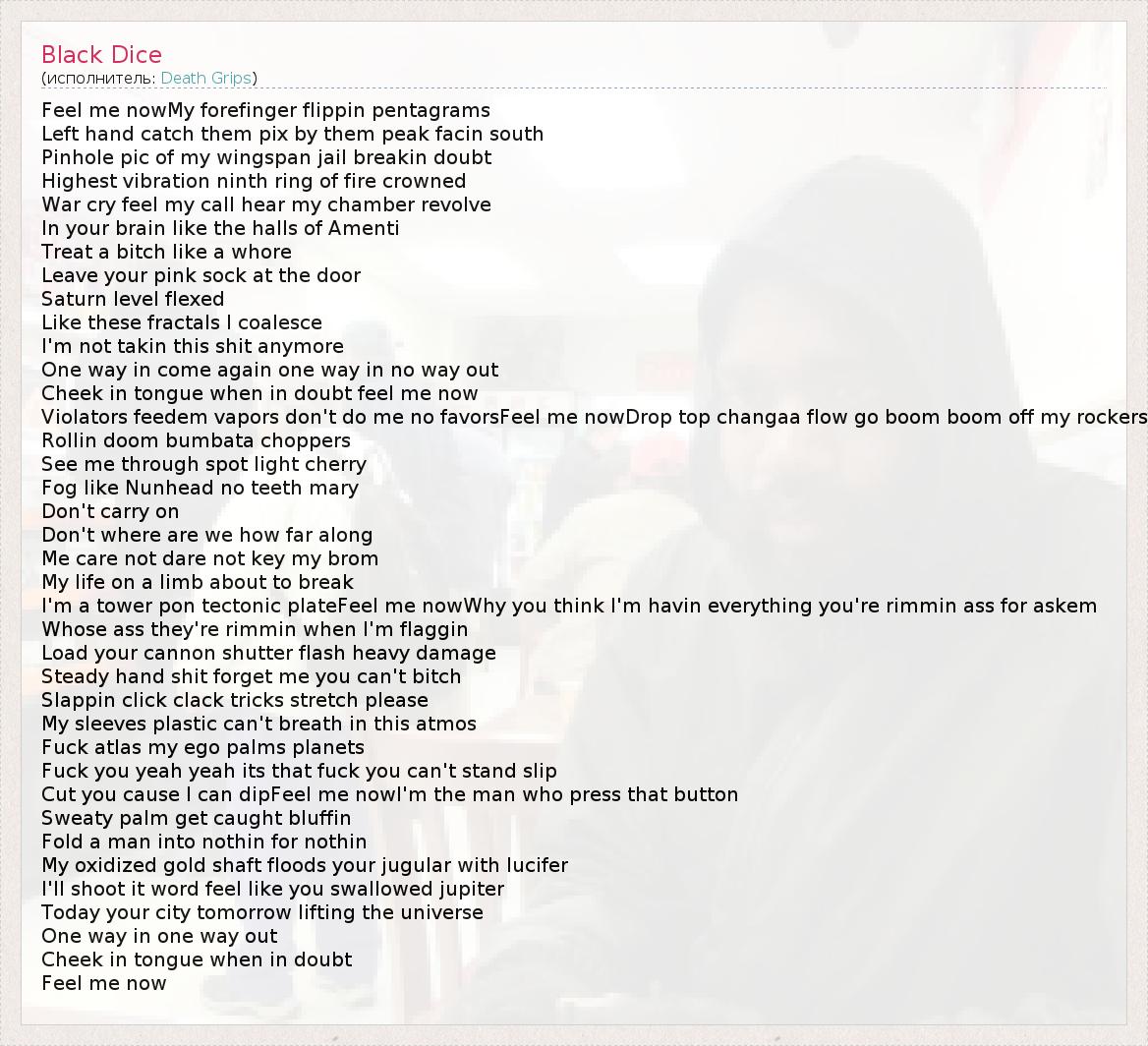 А как ты думаешь, о чем песня "Black Dice" ?