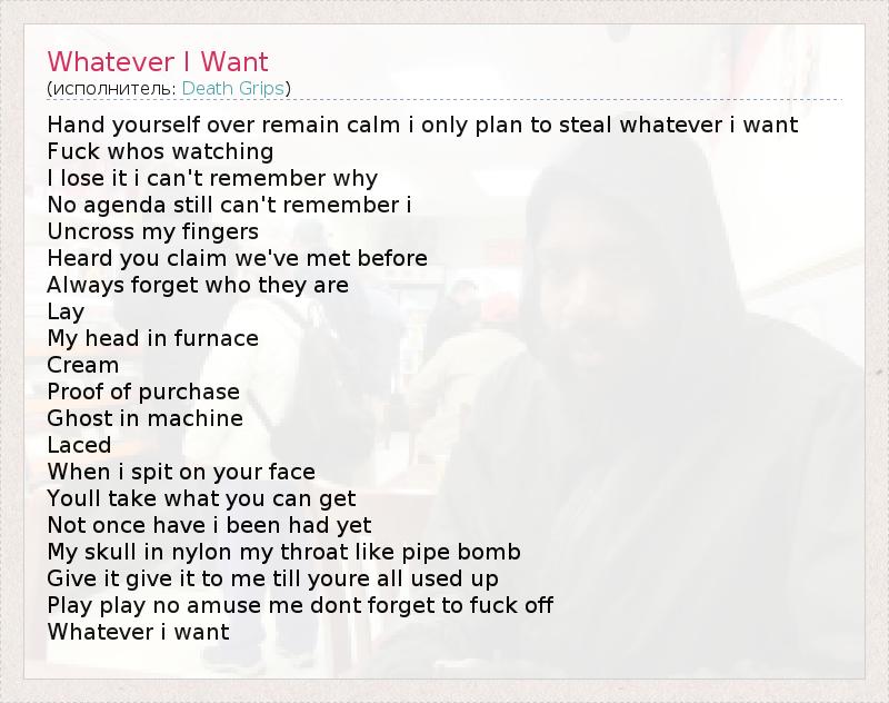 А как ты думаешь, о чем песня "Whatever I Want" ?