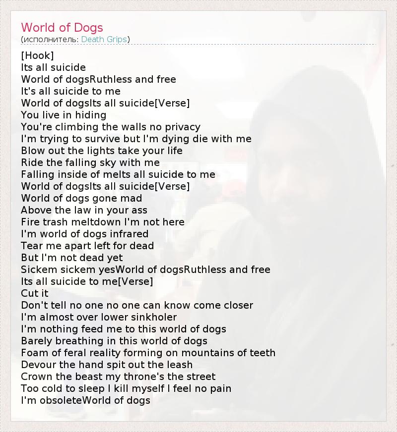 А как ты думаешь, о чем песня "World of Dogs" ?