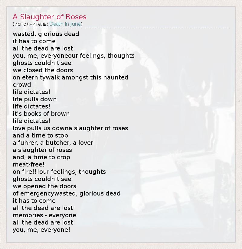 А как ты думаешь, о чем песня "A Slaughter of Roses" ?