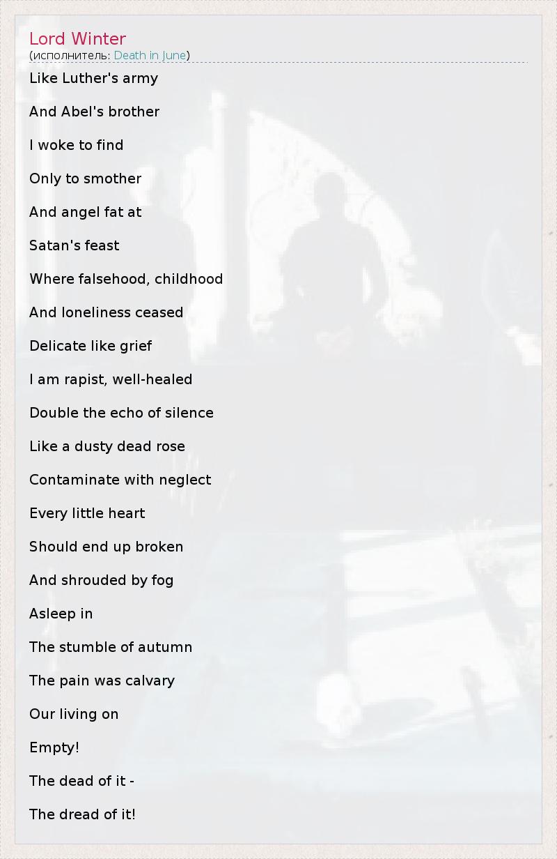А как ты думаешь, о чем песня "Lord Winter" ?