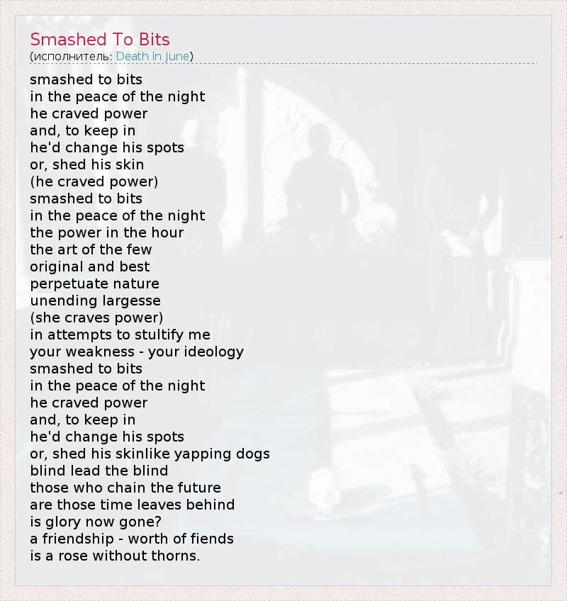 А как ты думаешь, о чем песня "Smashed To Bits" ?