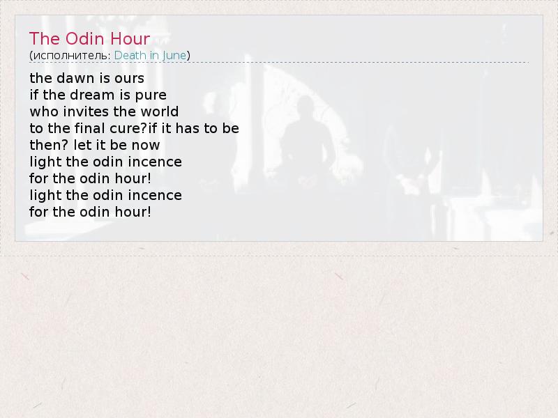 А как ты думаешь, о чем песня "The Odin Hour" ?