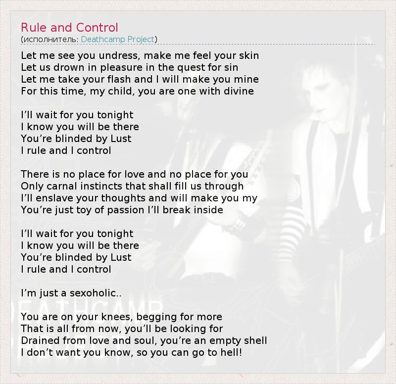 А как ты думаешь, о чем песня "Rule and Control" ?