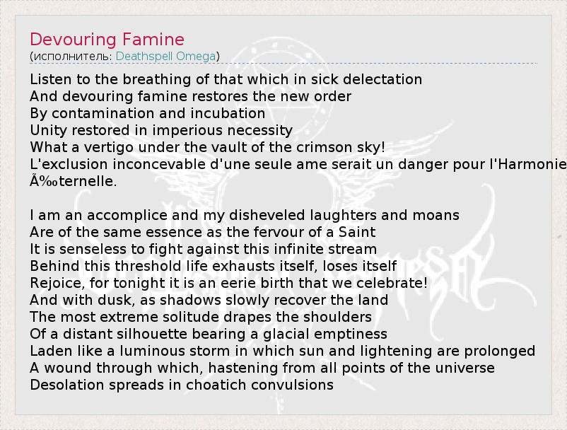 А как ты думаешь, о чем песня "Devouring Famine" ?