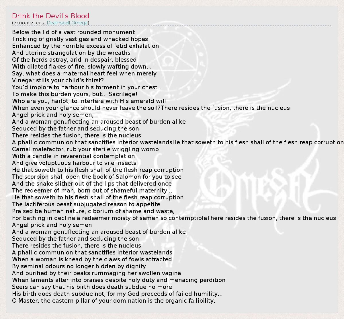 А как ты думаешь, о чем песня "Drink the Devil's Blood" ?