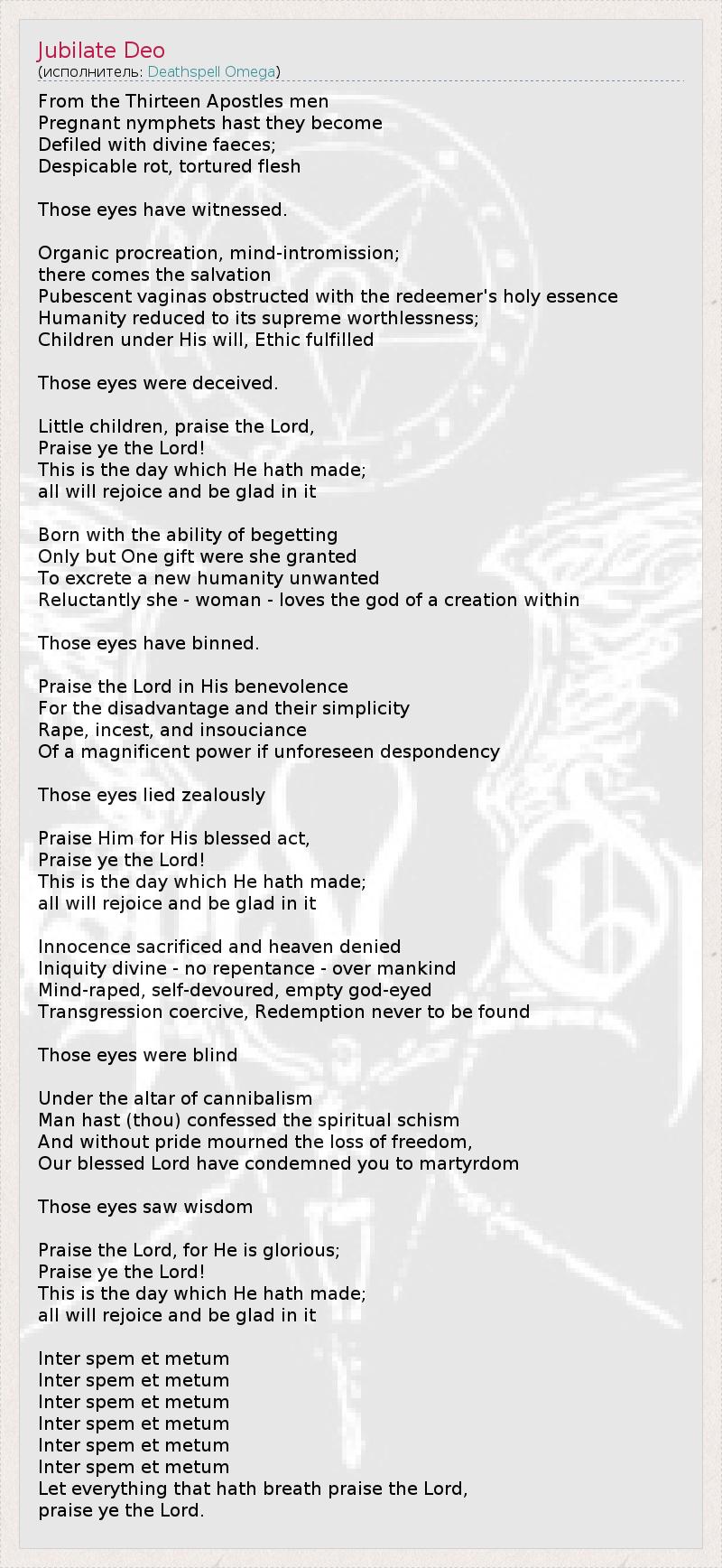 А как ты думаешь, о чем песня "Jubilate Deo" ?
