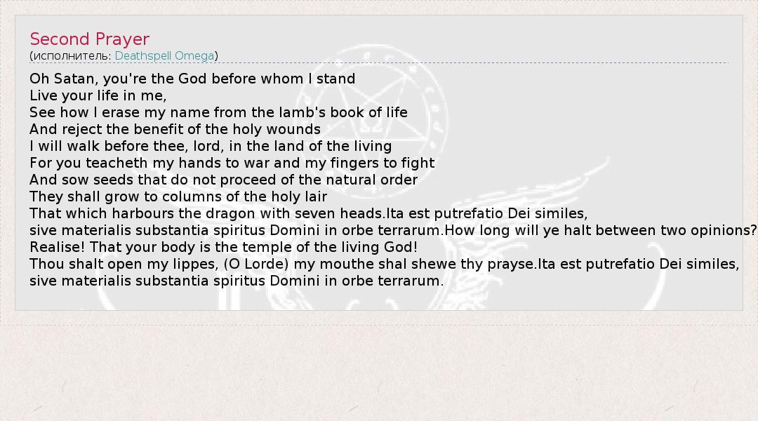 А как ты думаешь, о чем песня "Second Prayer" ?