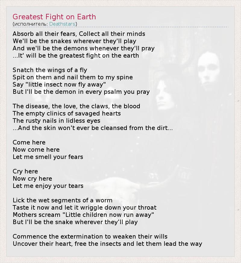А как ты думаешь, о чем песня "Greatest Fight on Earth" ?