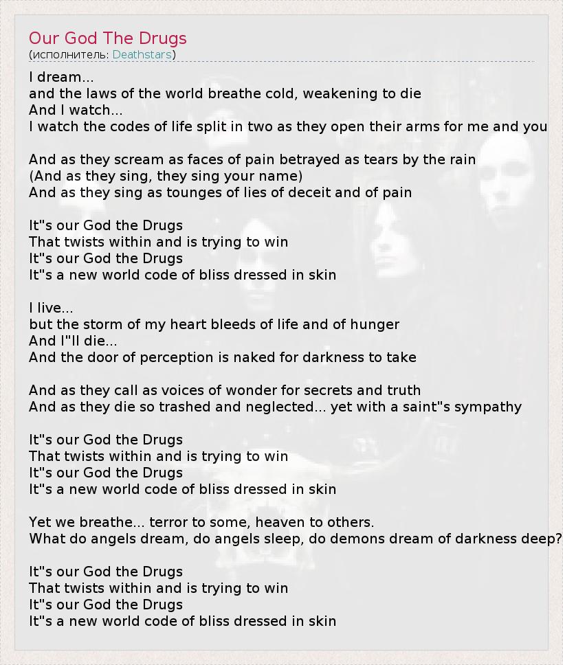А как ты думаешь, о чем песня "Our God The Drugs" ?