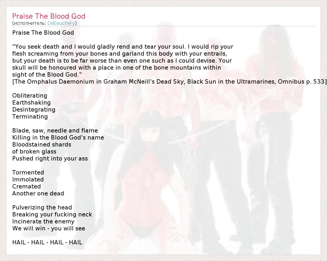 А как ты думаешь, о чем песня "Praise The Blood God" ?