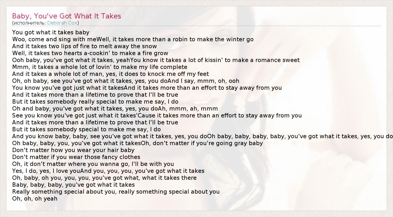 А как ты думаешь, о чем песня "Baby, You've Got What It Takes" ?