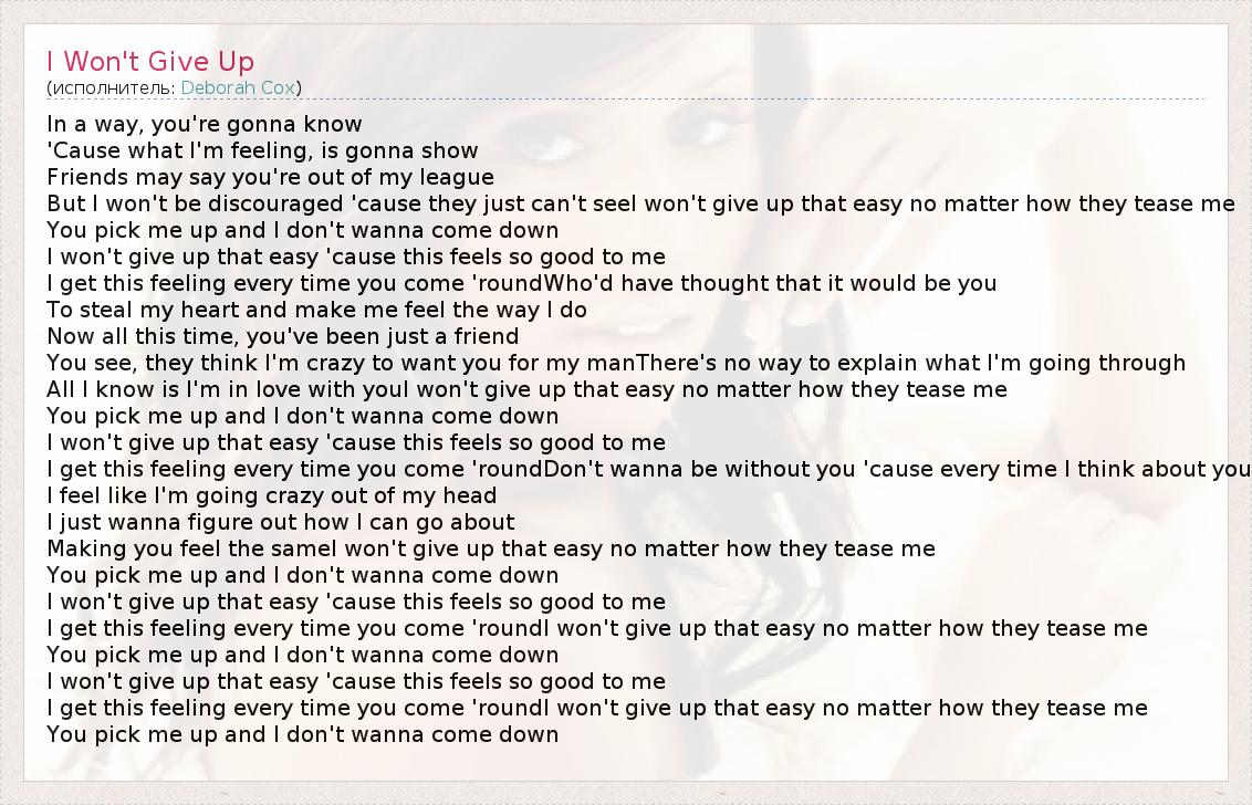 А как ты думаешь, о чем песня "I Won't Give Up" ?