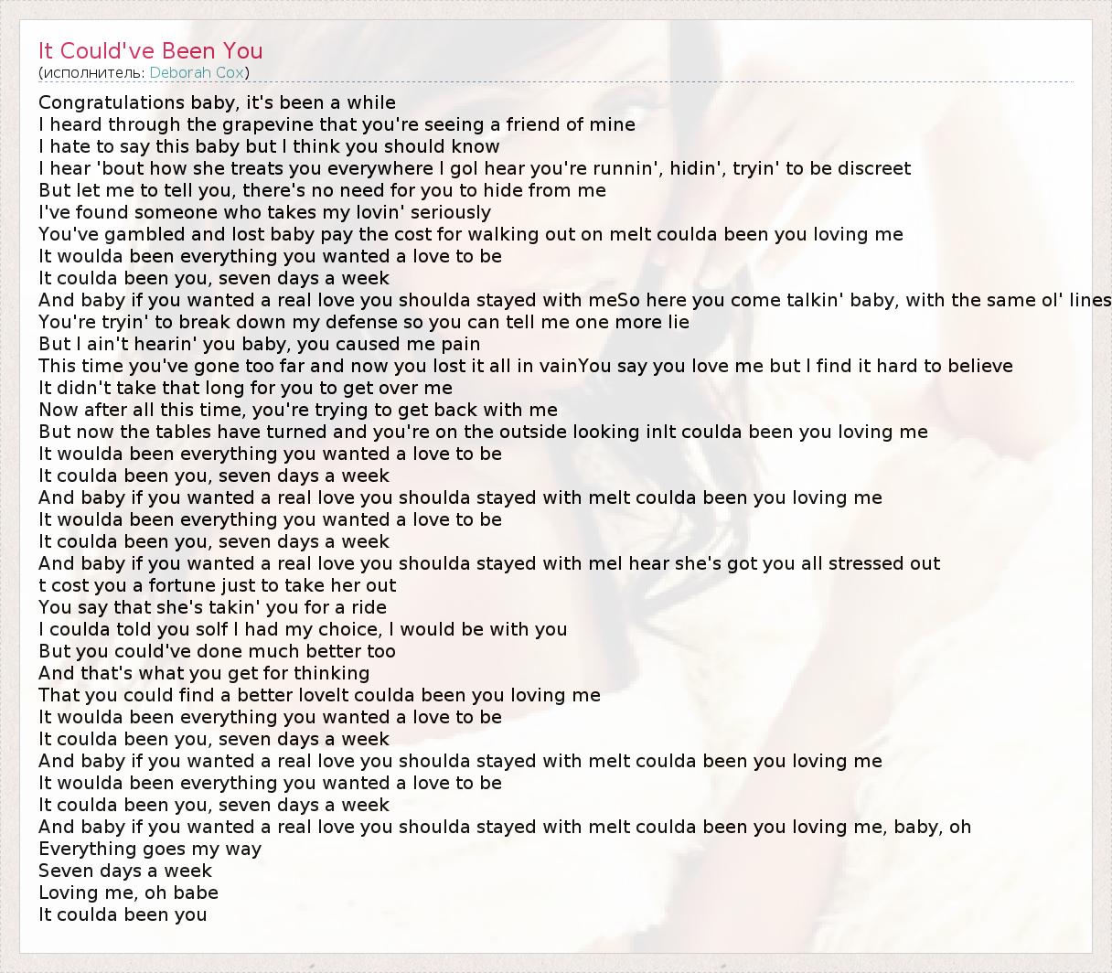 А как ты думаешь, о чем песня "It Could've Been You" ?