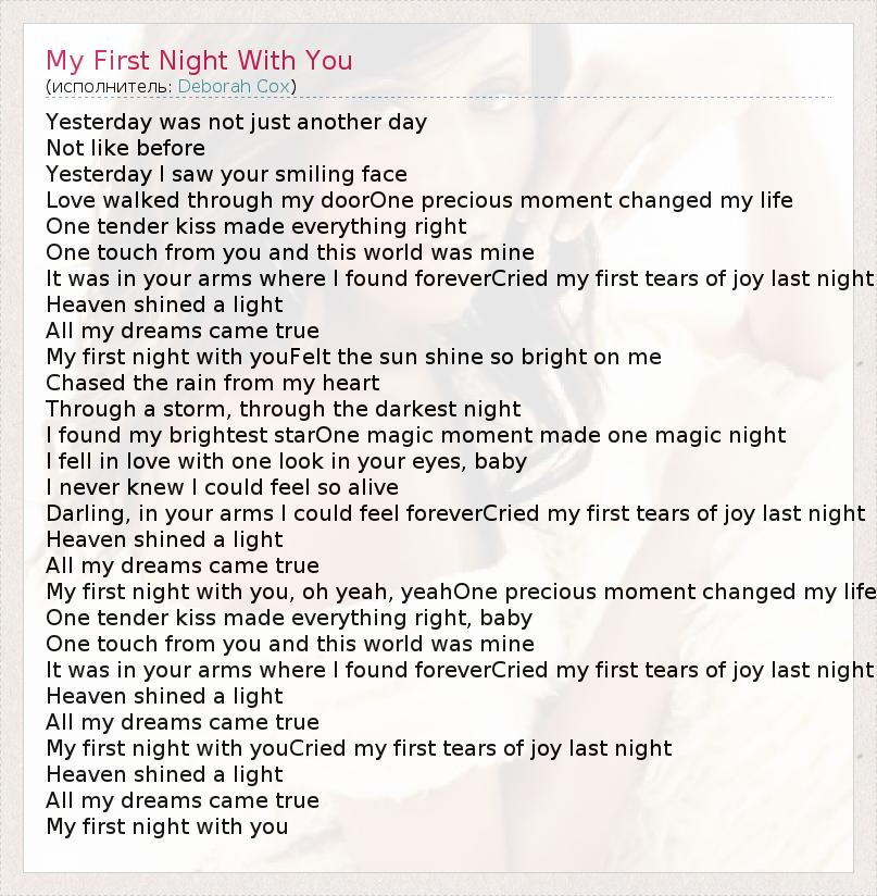 А как ты думаешь, о чем песня "My First Night With You" ?