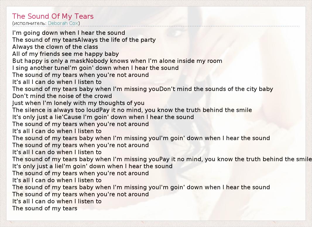 The sound of my tears baby when I'm missing youPay it no mind, you know the truth behind the smile