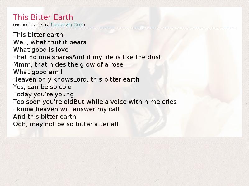 А как ты думаешь, о чем песня "This Bitter Earth" ?