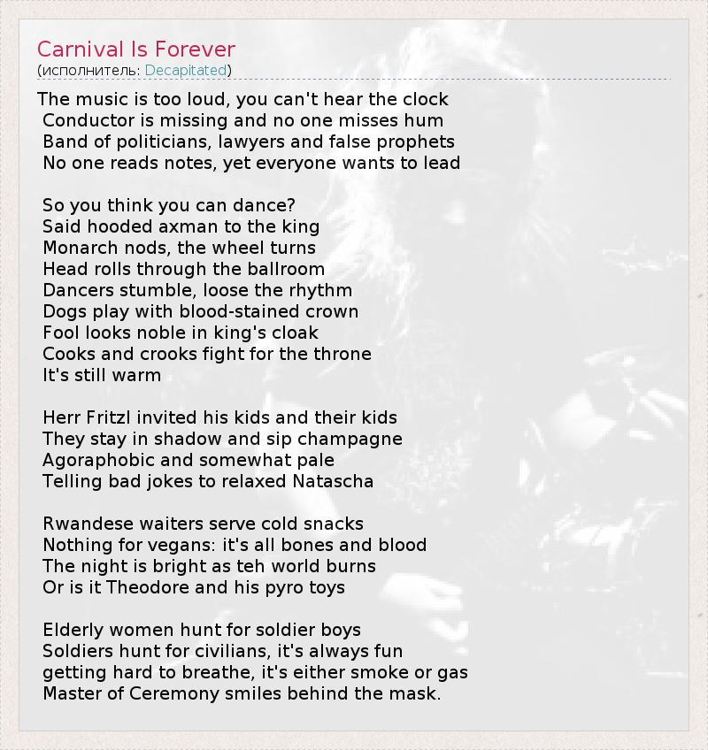 А как ты думаешь, о чем песня "Carnival Is Forever" ?