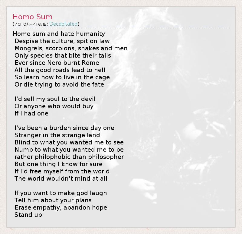 А как ты думаешь, о чем песня "Homo Sum" ?
