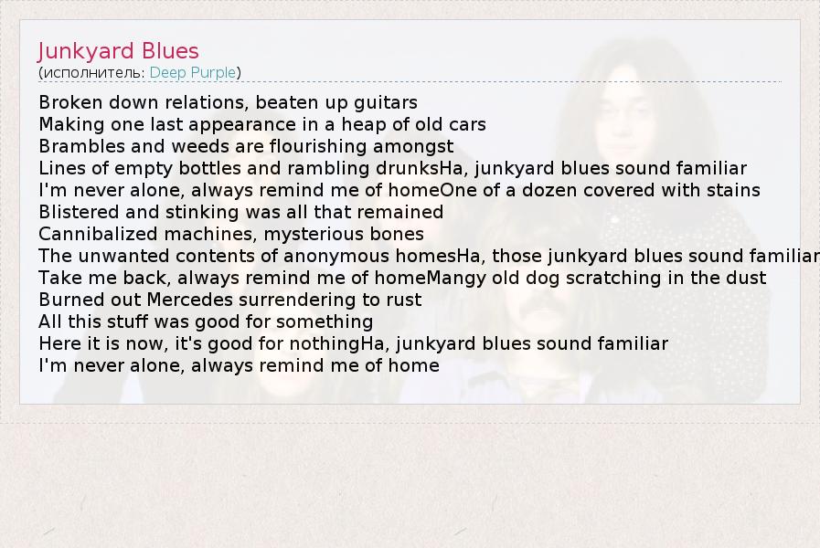 А как ты думаешь, о чем песня "Junkyard Blues" ?