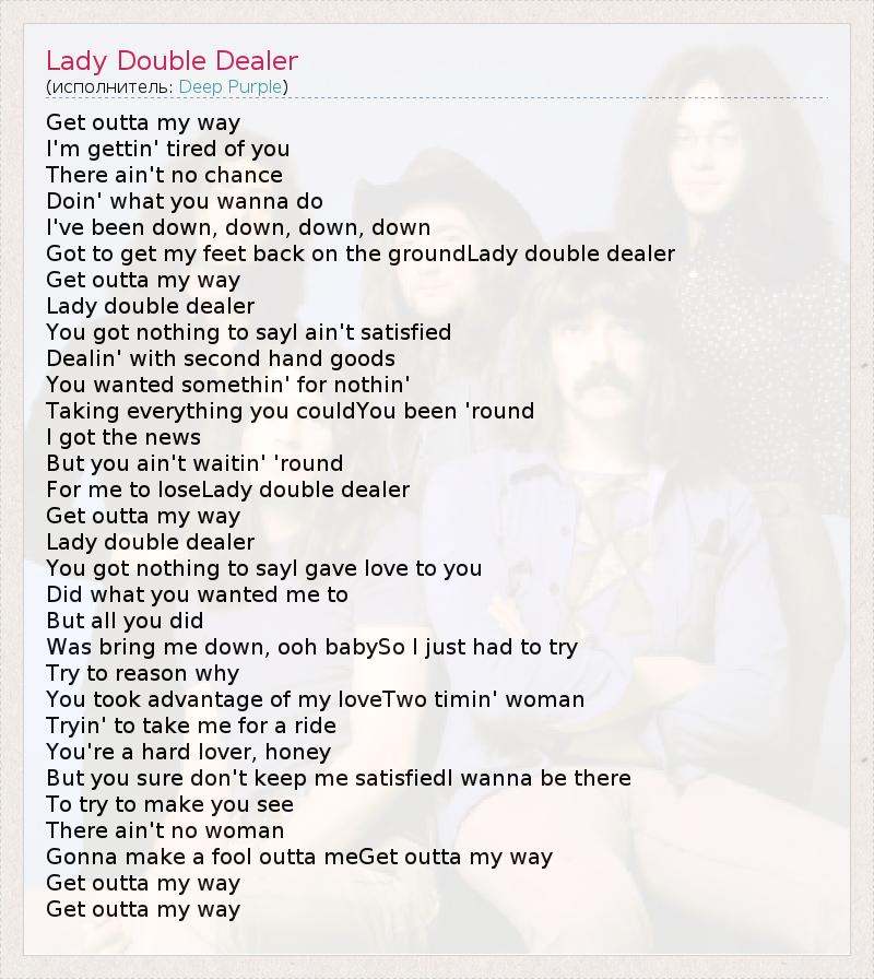 А как ты думаешь, о чем песня "Lady Double Dealer" ?