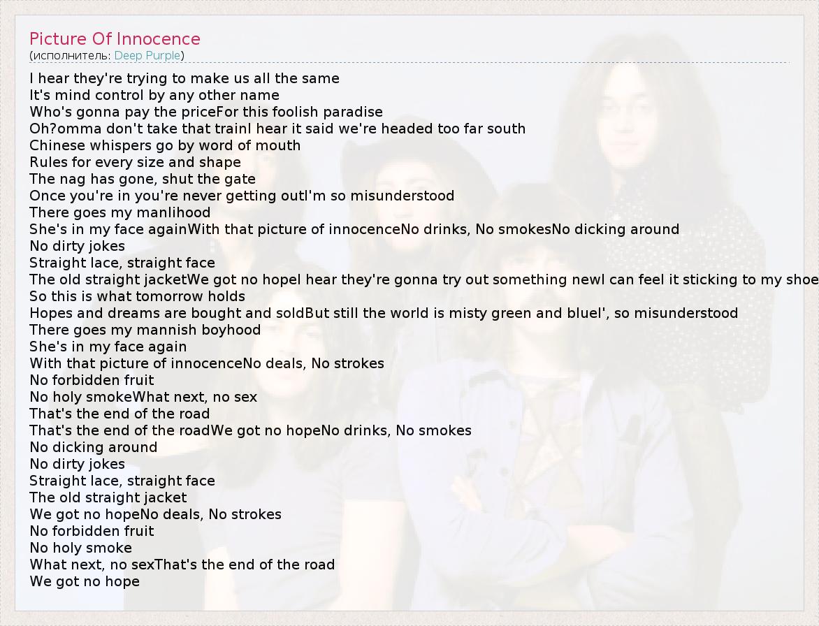 А как ты думаешь, о чем песня "Picture Of Innocence" ?