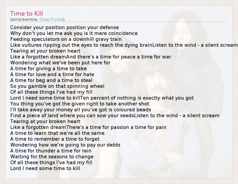 А как ты думаешь, о чем песня "Time to Kill" ?